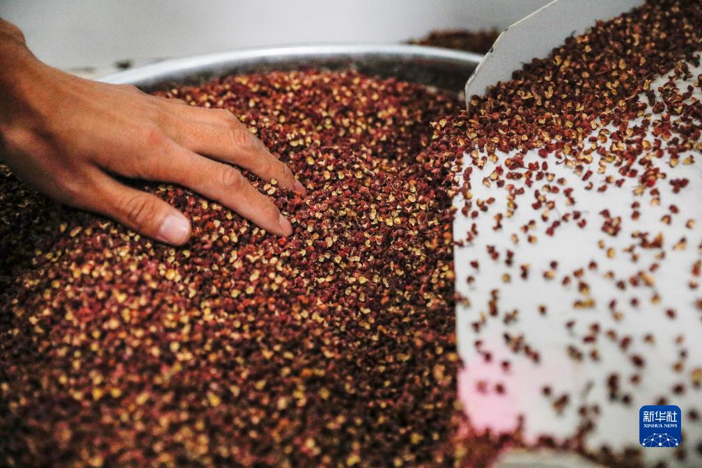 11月15日,在舟曲縣電子商務(wù)公共服務(wù)中心,工作人員在整理篩選好的花椒。