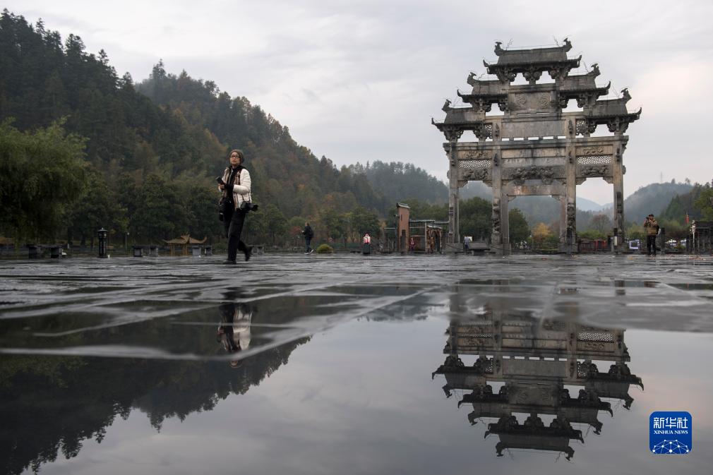11月16日,游客在黟縣西遞古村游覽。