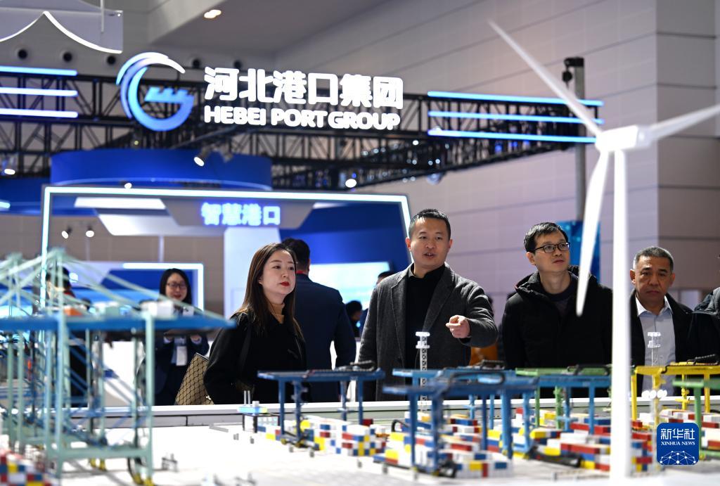 11月16日,參會(huì )嘉賓在2023天津國際航運產(chǎn)業(yè)博覽會(huì )天津港展區參觀(guān)。