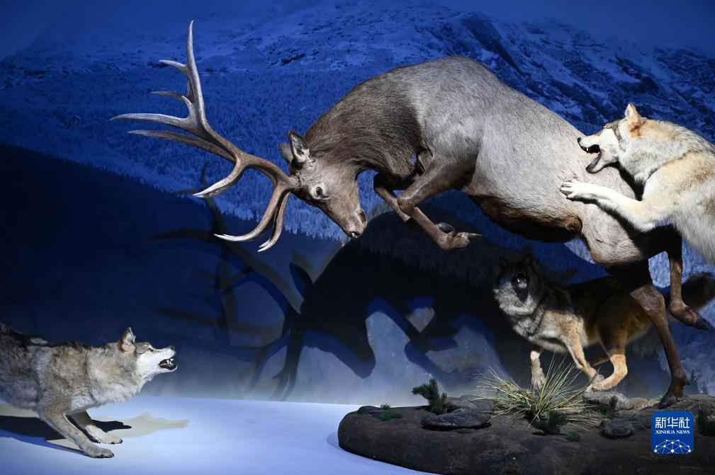11月16日在展覽上拍攝的天山馬鹿標本。