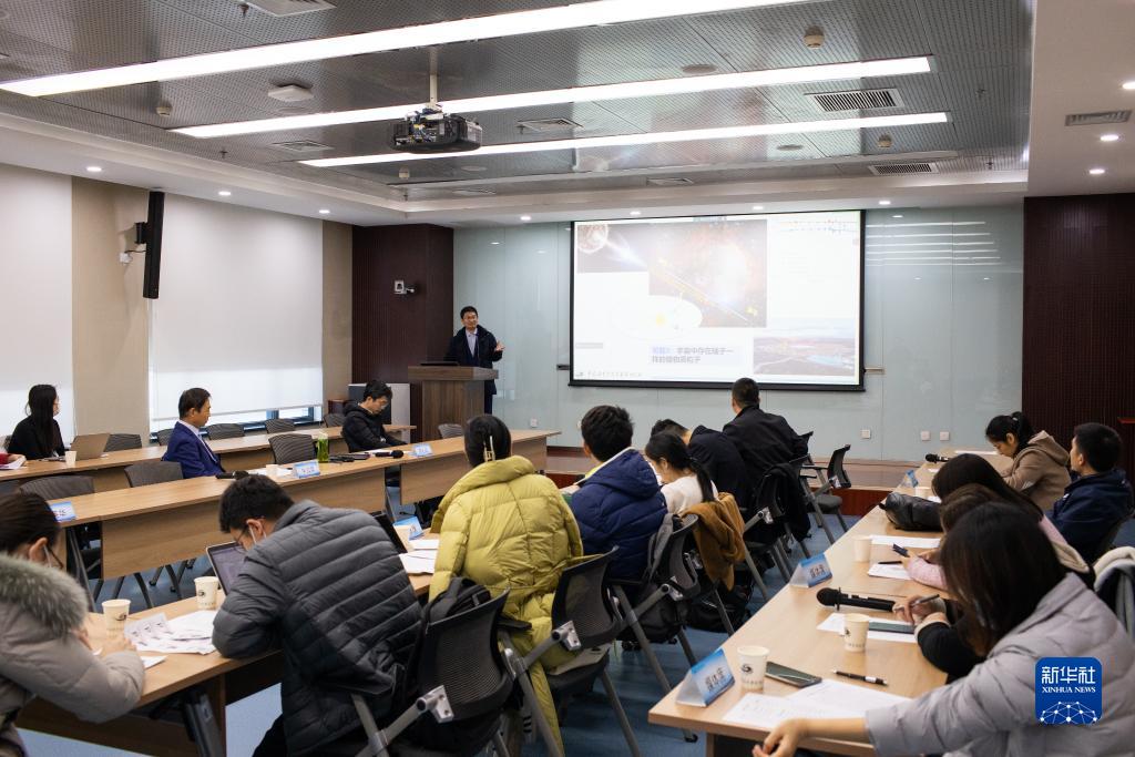 11月14日,在中國科學(xué)院高能物理研究所,文章通訊作者、中國科學(xué)院高能物理研究所研究員陳松戰在介紹研究成果。