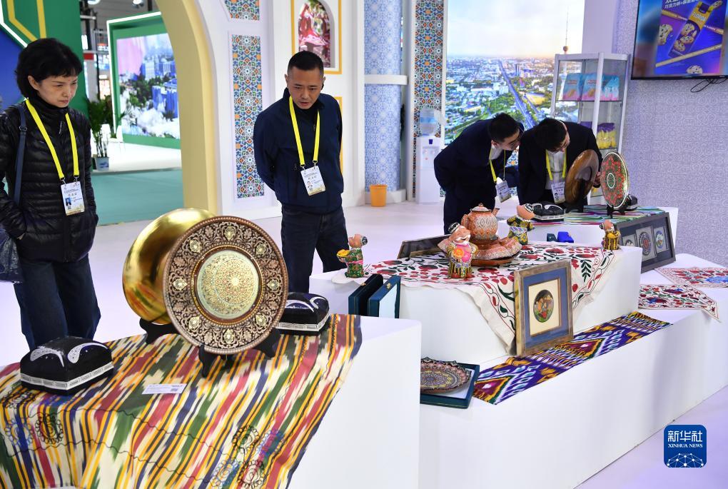 11月16日,觀(guān)眾在第七屆絲博會(huì )烏茲別克斯坦展位上參觀(guān)工藝品。