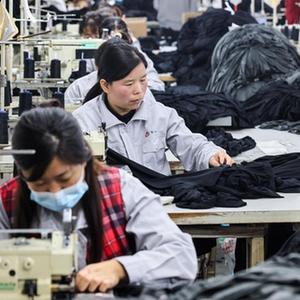 11月16日,東平縣老湖鎮居民在水利扶貧產(chǎn)業(yè)園內的紡織企業(yè)工作。