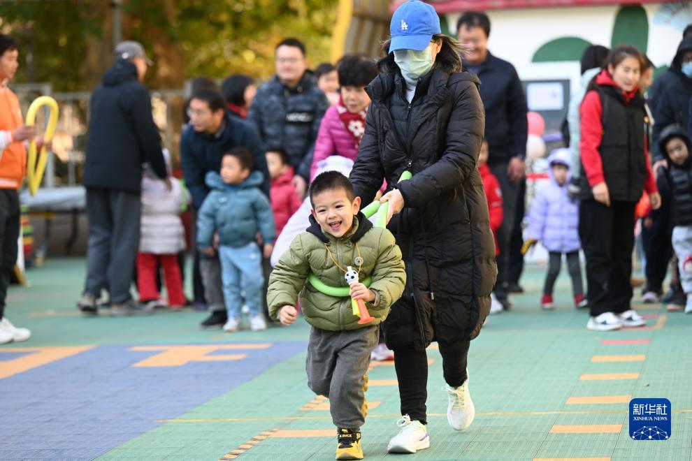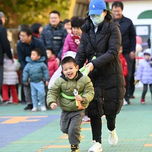 11月17日,幼兒在親子運動(dòng)會(huì )上游戲。