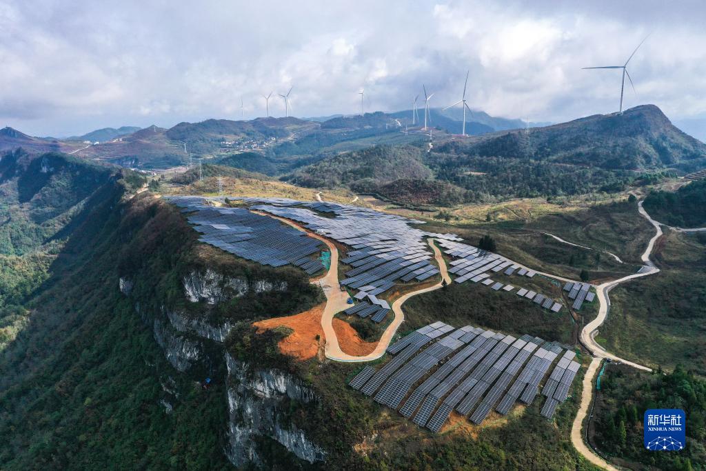 這是11月16日拍攝的貴州省石阡縣頂董坡風(fēng)電光伏項目(無(wú)人機照片)。