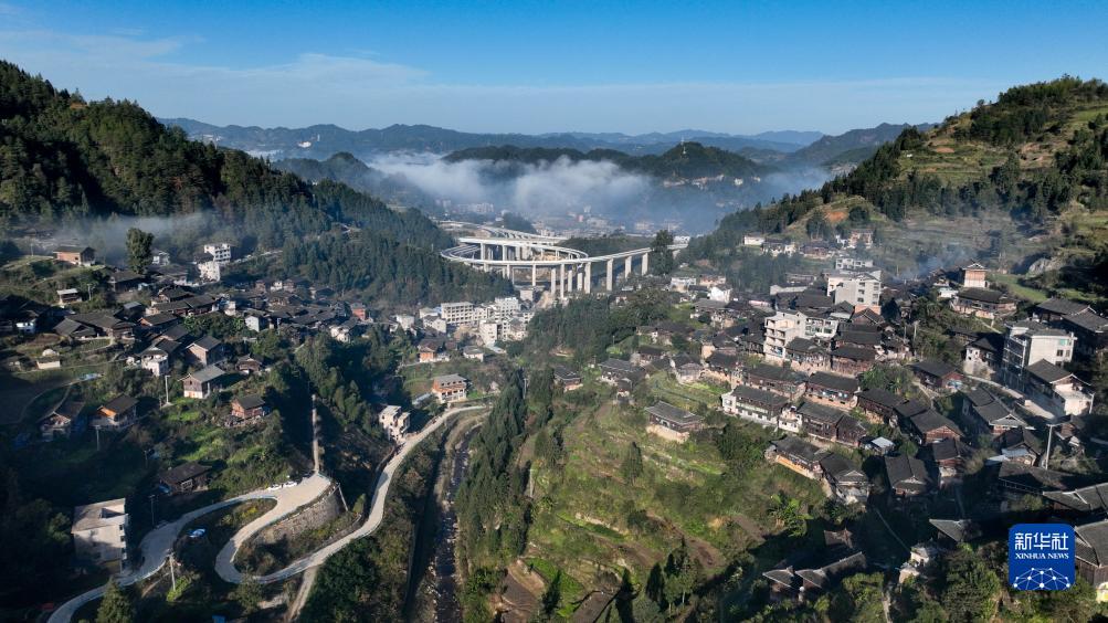 初冬時(shí)節,位于貴州省黔東南苗族侗族自治州雷山縣境內的雷公山國家森林公園,云霧繚繞,民居、梯田、公路、橋梁交相輝映,美不勝收,景色如畫(huà)。
