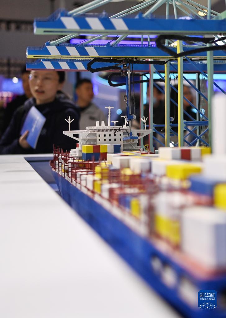 11月17日,觀(guān)眾在參觀(guān)天津港“智慧零碳”碼頭模型。