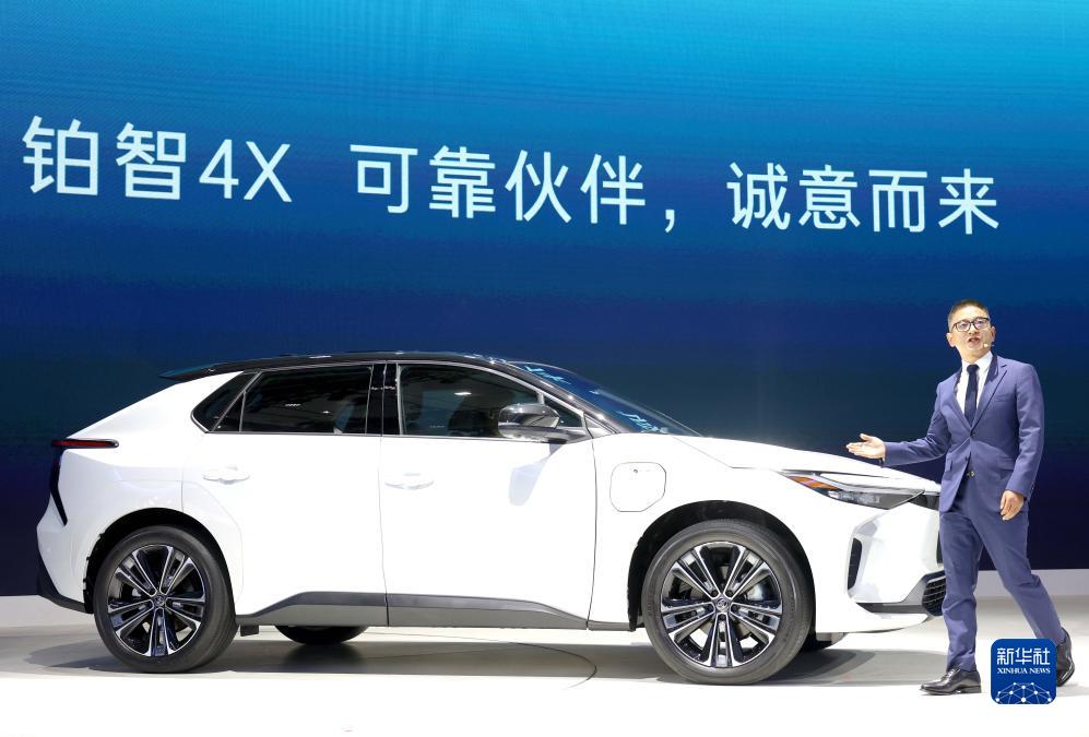 11月17日在廣州車(chē)展上拍攝的廣汽豐田新能源品牌鉑智推出的首款車(chē)型4X。