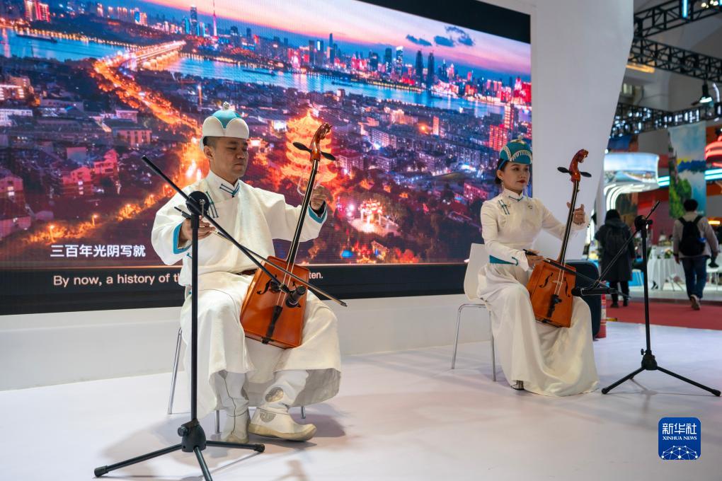 11月17日,演奏人員在2023中國國際旅游交易會(huì )內蒙古展區拉馬頭琴。