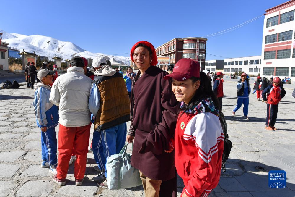 斯曲卓瑪的父親來(lái)學(xué)校接女兒回家(11月15日攝)。