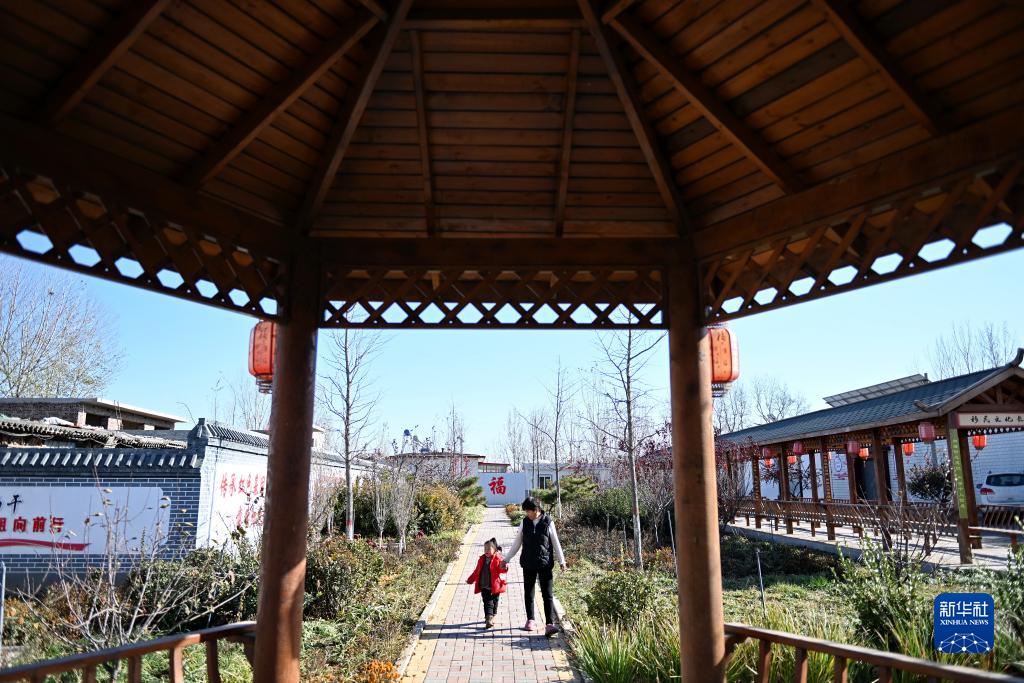 11月17日,河北省灤州市榛子鎮曬甲嶺村村民在村內小游園里游玩。