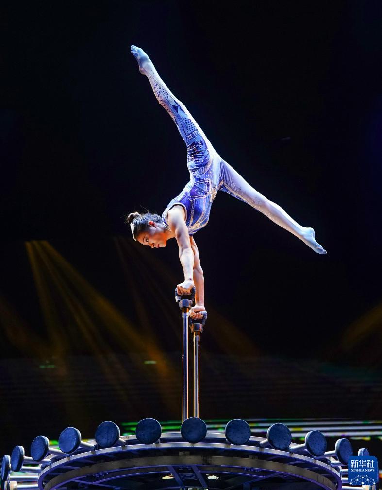 這是江蘇省雜技團帶來(lái)的雜技《凌云——倒立技巧》(11月17日攝)。