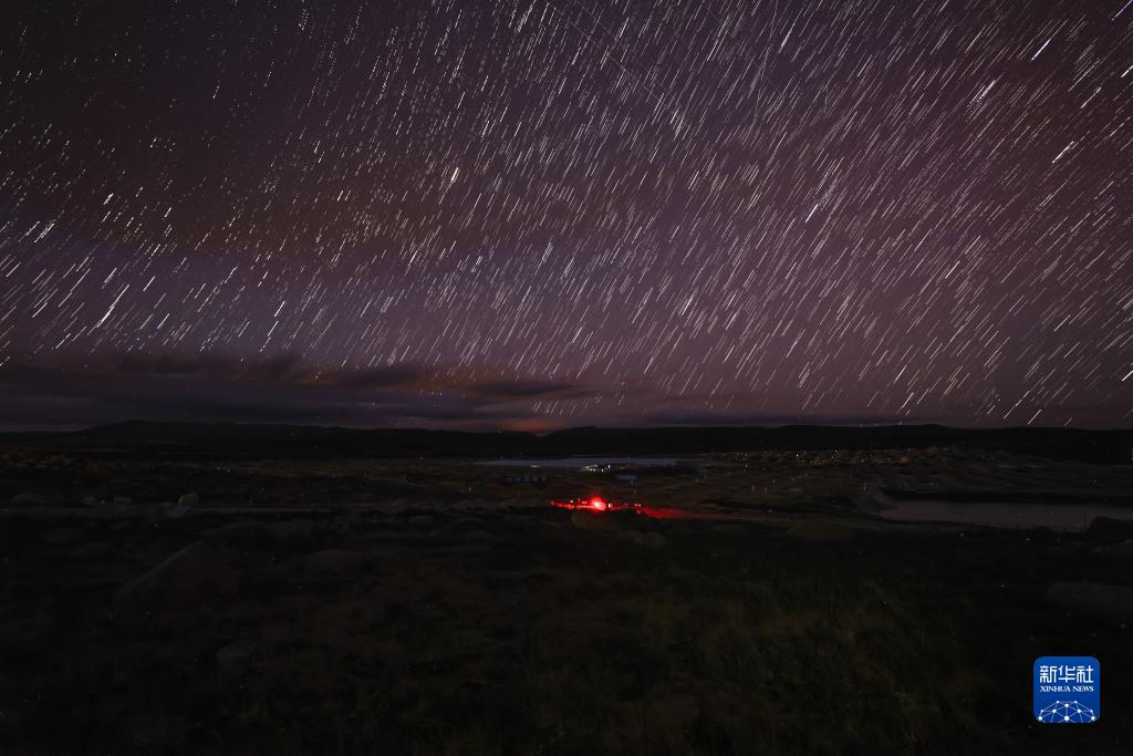 這是4月21日晚拍攝的星空下的高海拔宇宙線(xiàn)觀(guān)測站“拉索”(合成照片)。