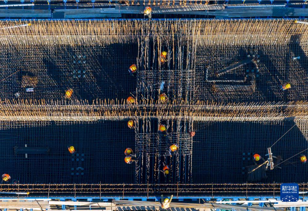 11月18日,工人在進(jìn)行施工作業(yè)(無(wú)人機照片)。