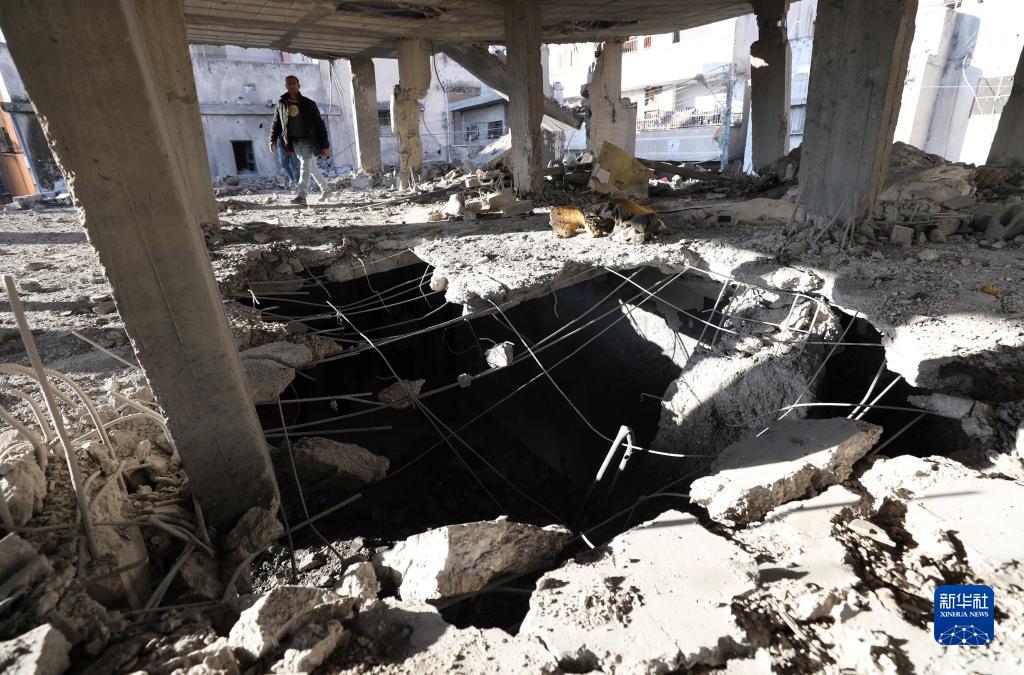 11月18日,在約旦河西岸城市納布盧斯的巴拉塔難民營(yíng),巴勒斯坦人查看沖突后的受損建筑。