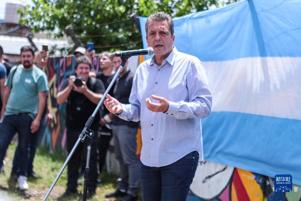 11月19日,阿根廷中左翼執政聯(lián)盟祖國聯(lián)盟候選人馬薩在阿根廷布宜諾斯艾利斯省蒂格雷市的一處投票站投票后發(fā)表講話(huà)。