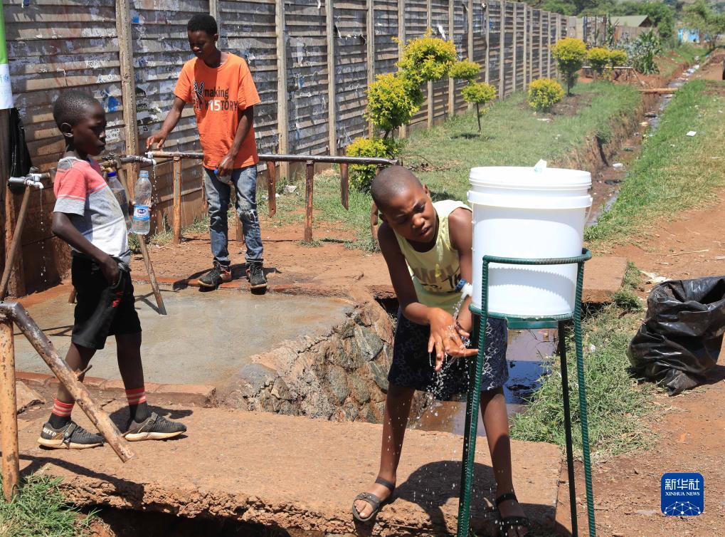 11月18日,在津巴布韋哈拉雷庫瓦扎納區一處診所,一名男孩在洗手。