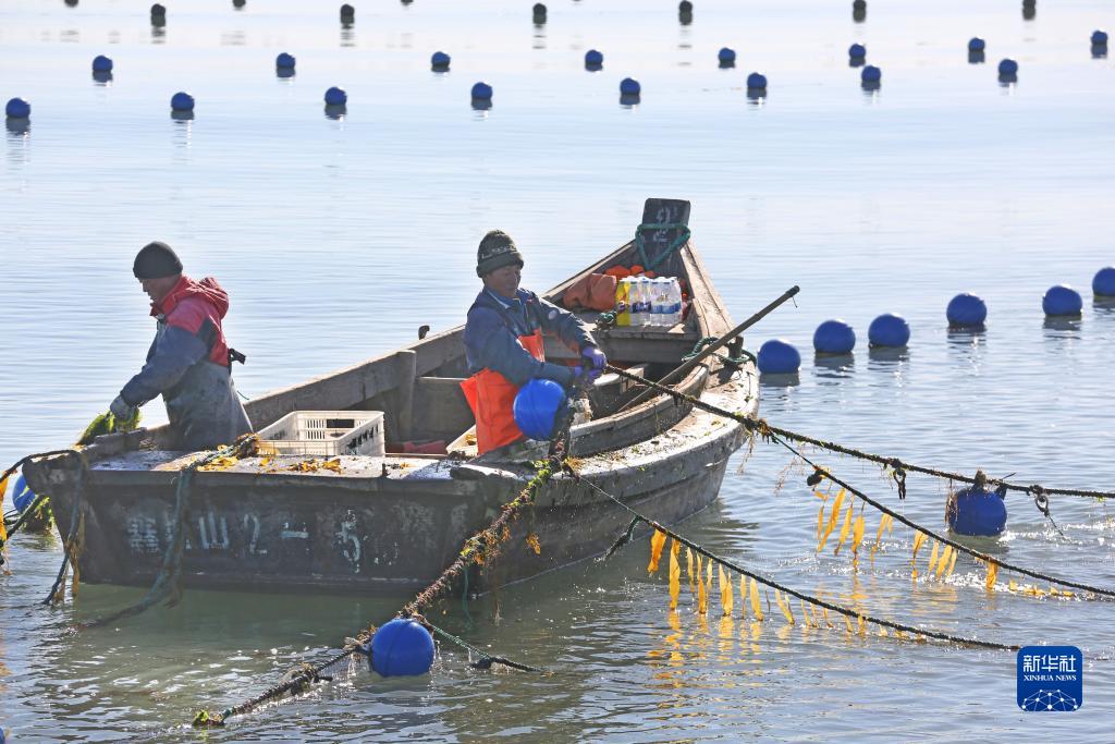 近期,在“海帶之都”山東省榮成市,海帶養殖區展開(kāi)海帶“播種”作業(yè),漁船在海面來(lái)往穿梭,一派忙碌景象。