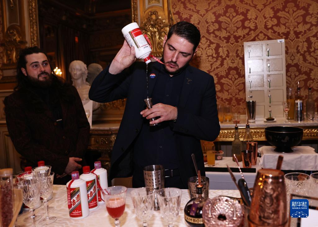 11月20日,在位于巴黎的法國外交部舉行的LA LISTE國際美食榜單揭曉活動(dòng)現場(chǎng),調酒師制作茅臺雞尾酒。