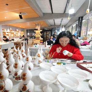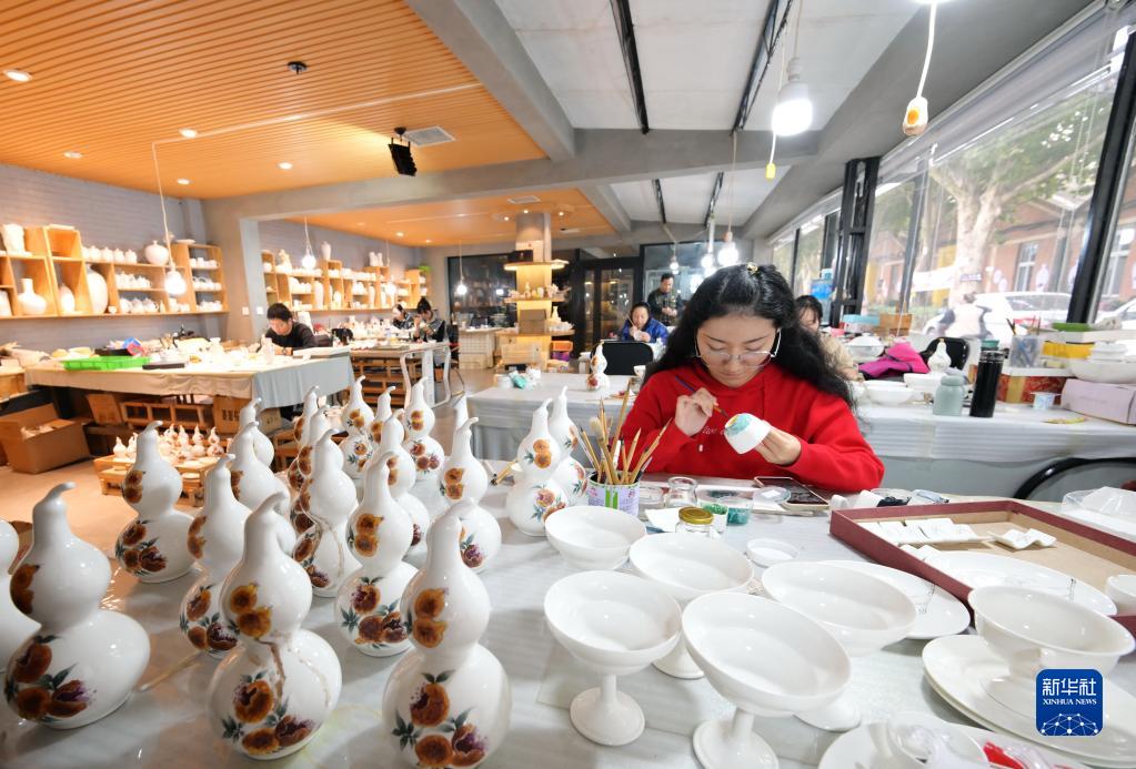 11月21日,一位工藝美術(shù)師在唐山市開(kāi)平區陶瓷文創(chuàng )產(chǎn)業(yè)園創(chuàng )作陶瓷繪畫(huà)作品。