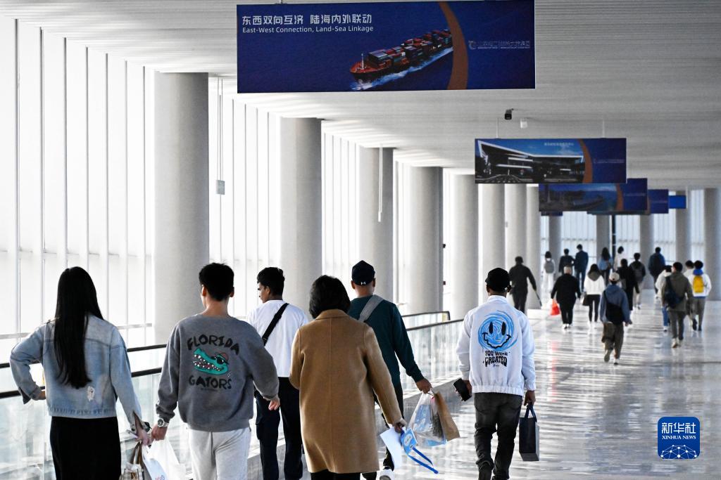 人們正通過(guò)青島郵輪母港客運中心廊橋準備登船(11月21日攝)。