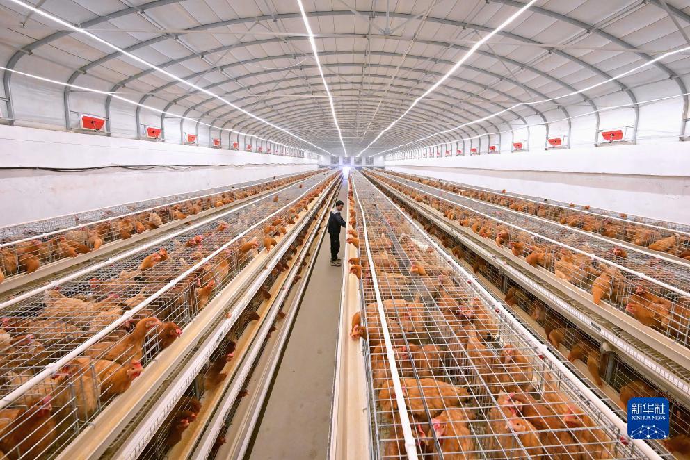 11月22日,工人在河北省唐山市蘆臺經(jīng)濟技術(shù)開(kāi)發(fā)區一家蛋雞養殖企業(yè)的雞舍工作。