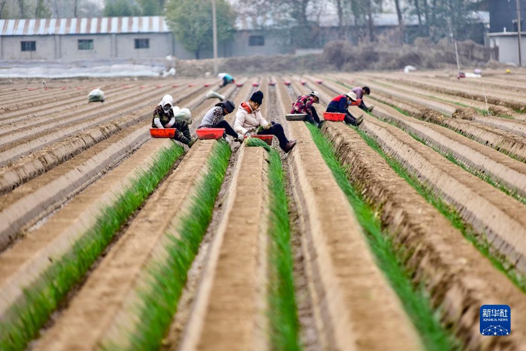 11月22日,在山東省青州市黃樓街道孫家村,村民在農田里栽種蔥苗。