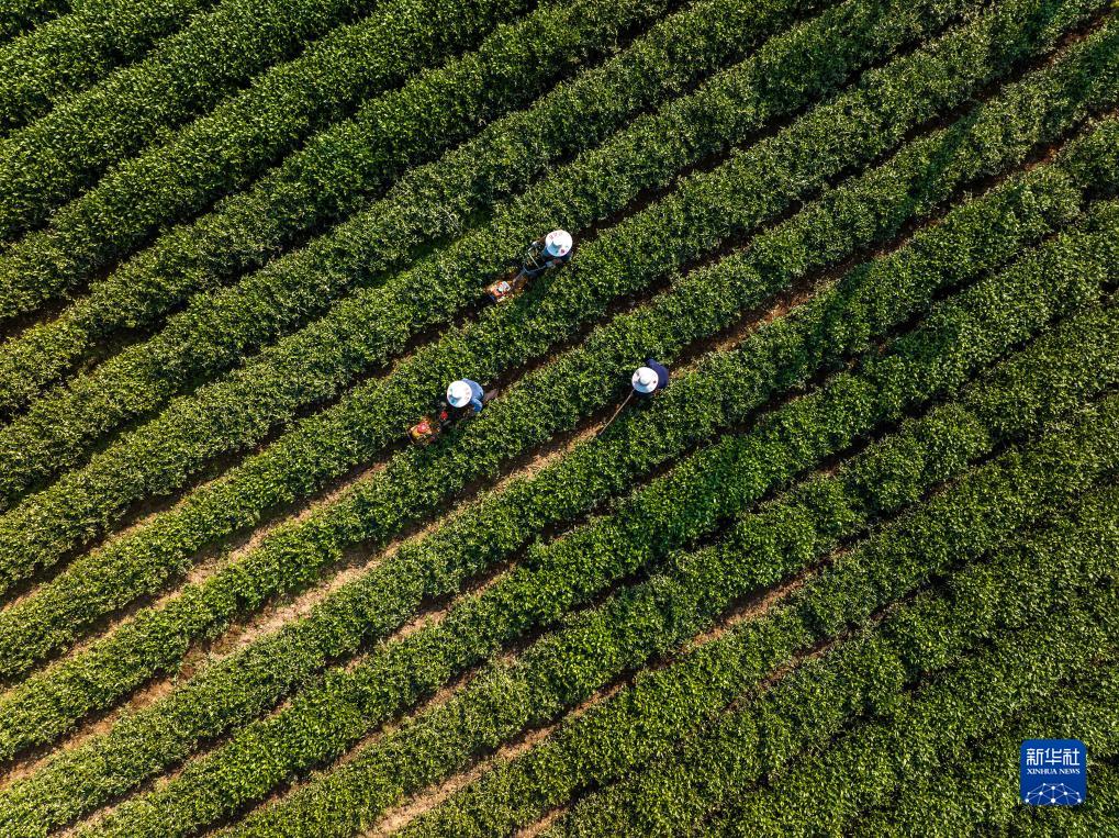 11月22日,湖北省宜昌市秭歸縣茅坪鎮建東村茶農進(jìn)行茶園管護(無(wú)人機照片)。