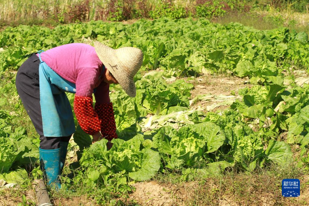 11月22日,福建省南平市順昌縣洋口鎮麻沙村農民在農田里收獲蔬菜。