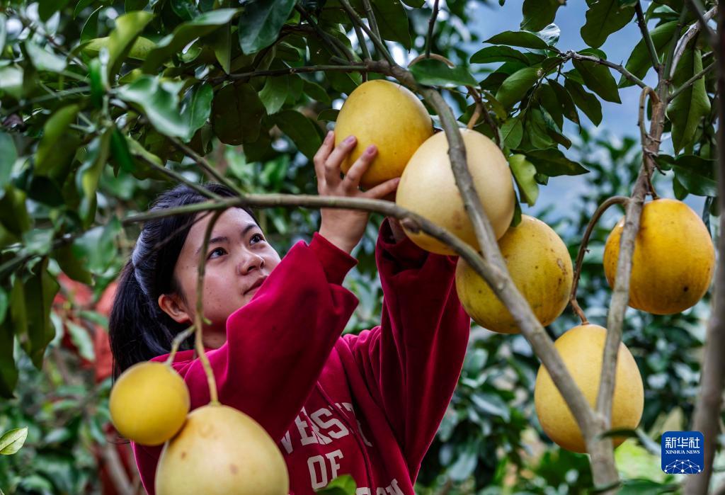 11月22日,村民在貴州省黔西市中坪鎮良豐村采摘蜜柚。
