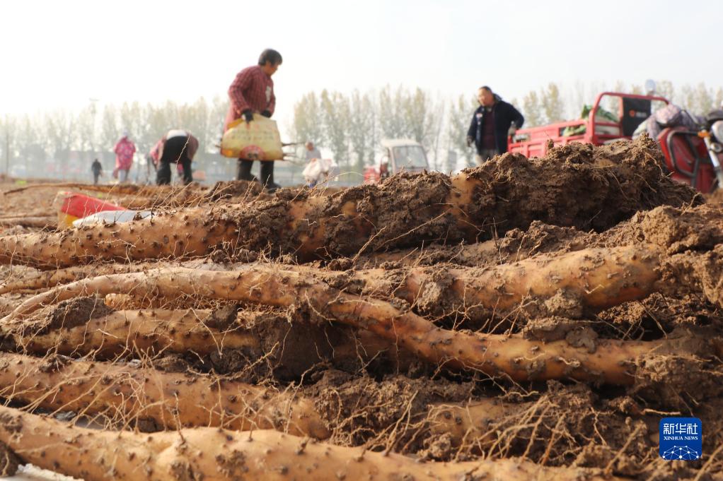 11月22日,在河南省焦作市溫縣黃莊鎮東林肇村,農民在田間收獲鐵棍山藥。