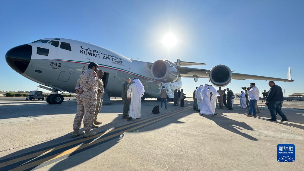當日,裝有一批人道主義救援物資的飛機從科威特機場(chǎng)起飛前往埃及。這批科威特為加沙地帶提供的救援物資包括8輛救護車(chē)以及多種醫療用品。
