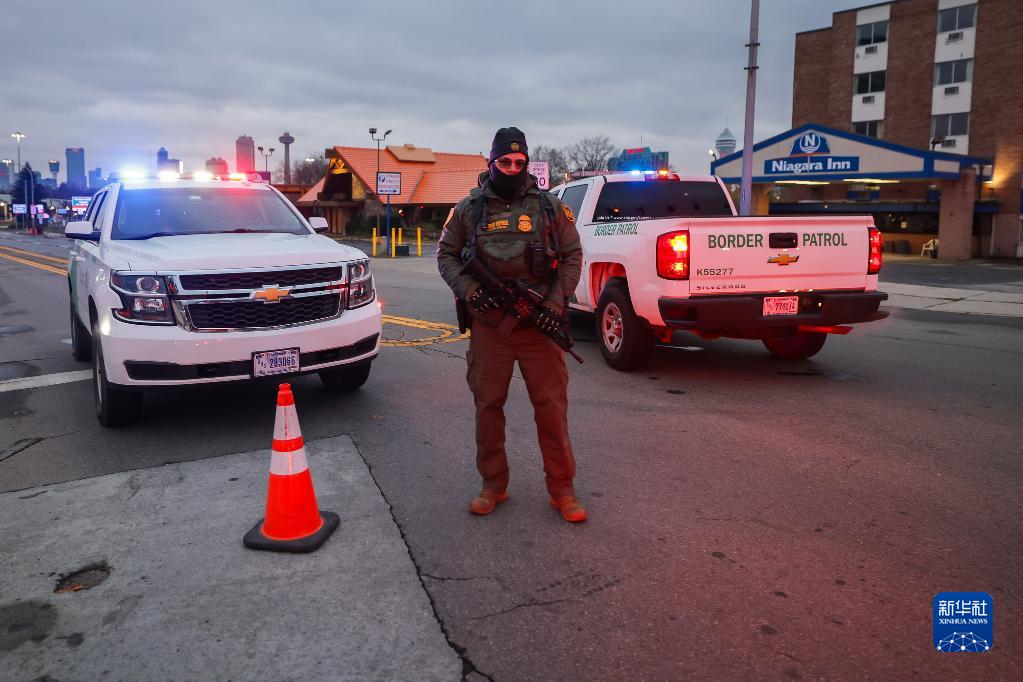 11月22日,警察在美加邊境彩虹橋口岸美國一側警戒。