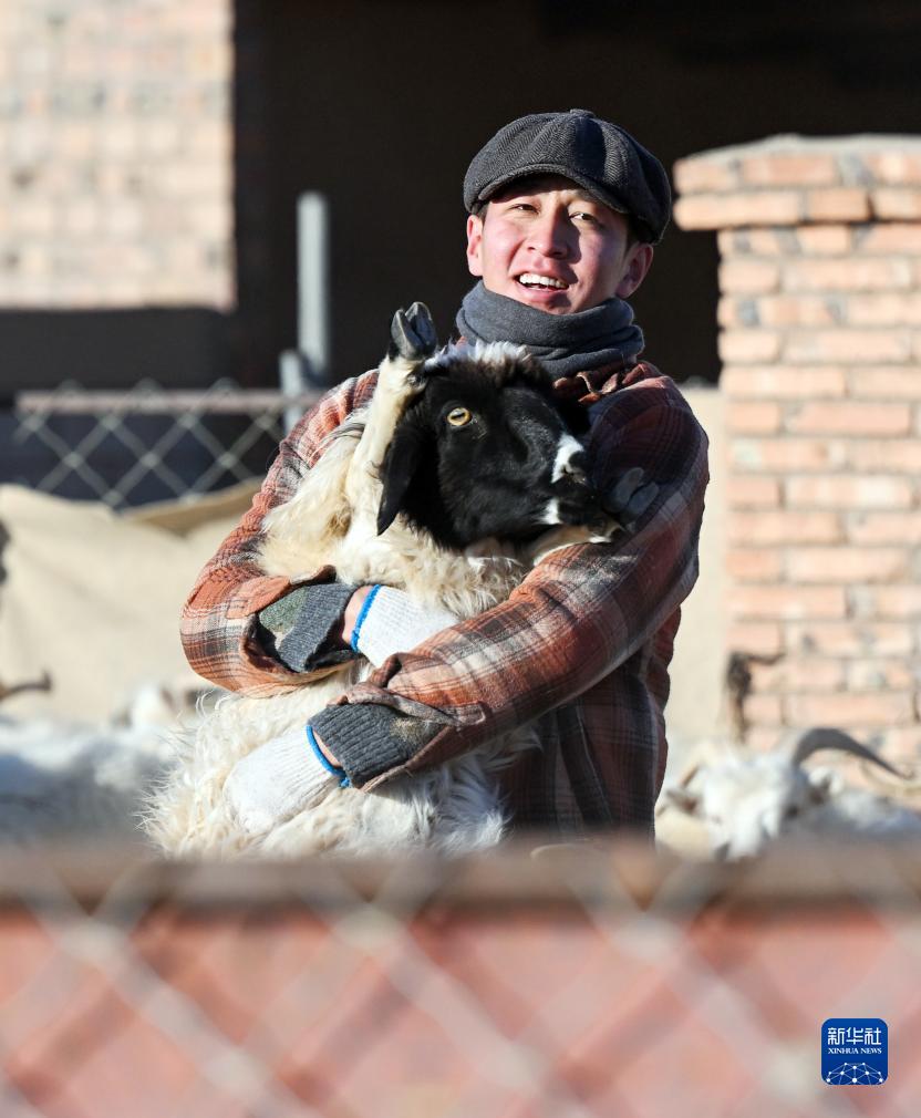 在內蒙古阿拉善左旗烏力吉蘇木溫都爾毛道嘎查,溫都蘇在羊圈里忙碌(11月17日攝)。
