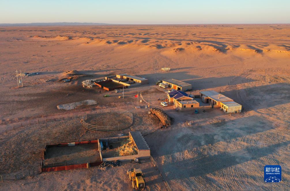這是內蒙古阿拉善左旗烏力吉蘇木溫都爾毛道嘎查牧民朝勒門(mén)格爾勒的家(11月17日攝,無(wú)人機照片)。