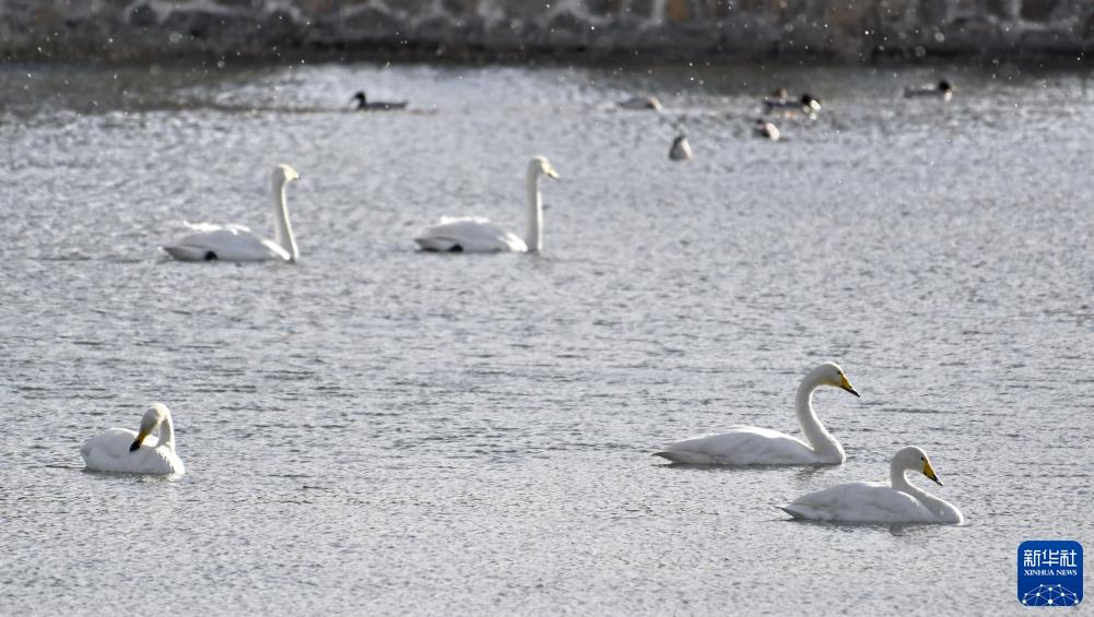 天鵝在密云水庫流域太師屯小南河內休憩(11月22日攝)。
