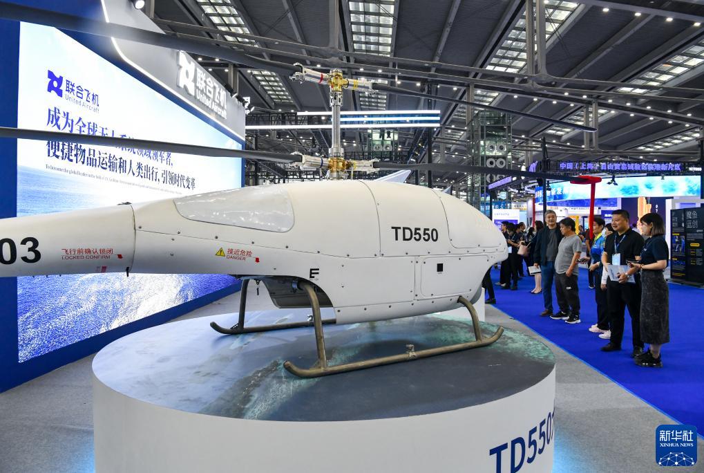 11月23日,觀(guān)眾在展覽現場(chǎng)了解一款無(wú)人直升機。