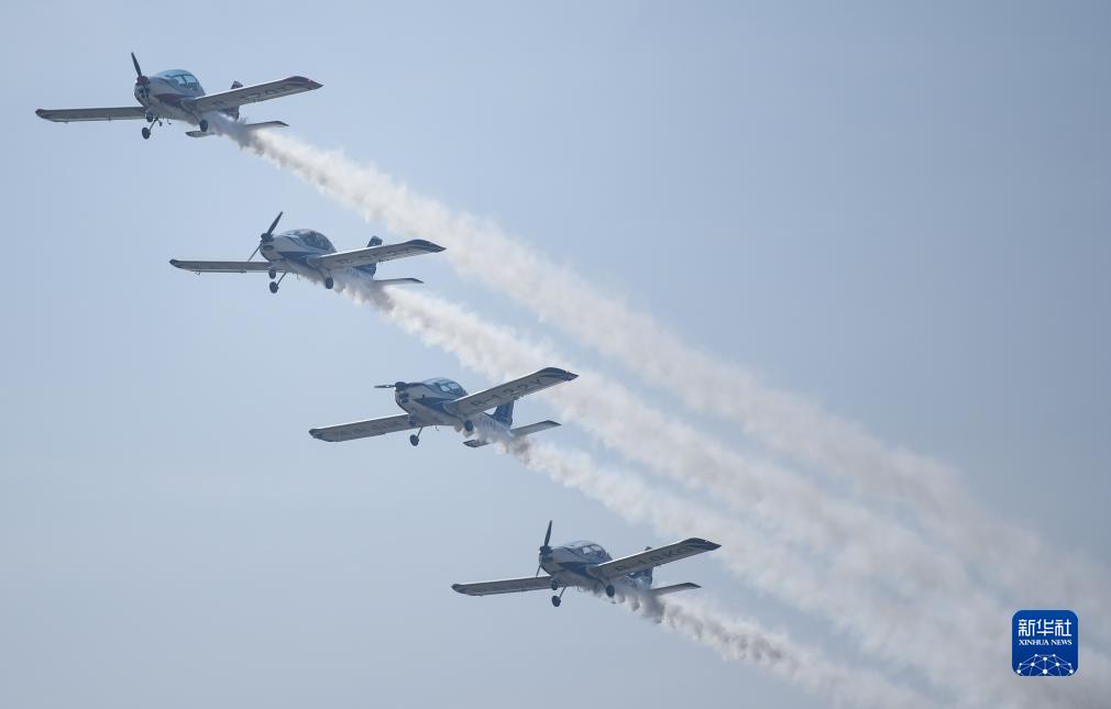 11月23日,山河飛行表演隊在2023亞洲通用航空展開(kāi)幕式上進(jìn)行飛行表演。
