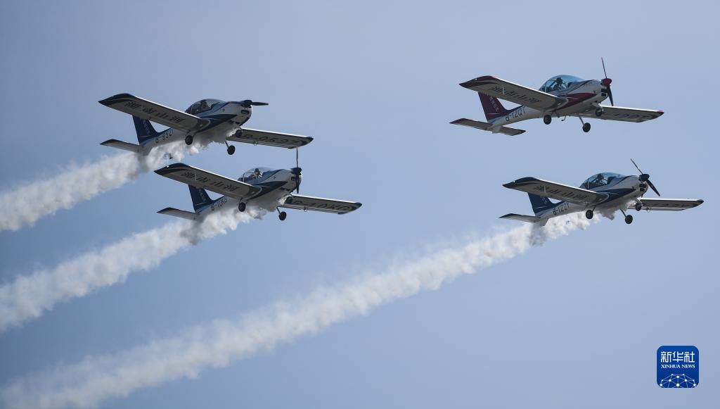 11月23日,山河飛行表演隊在2023亞洲通用航空展開(kāi)幕式上進(jìn)行飛行表演。