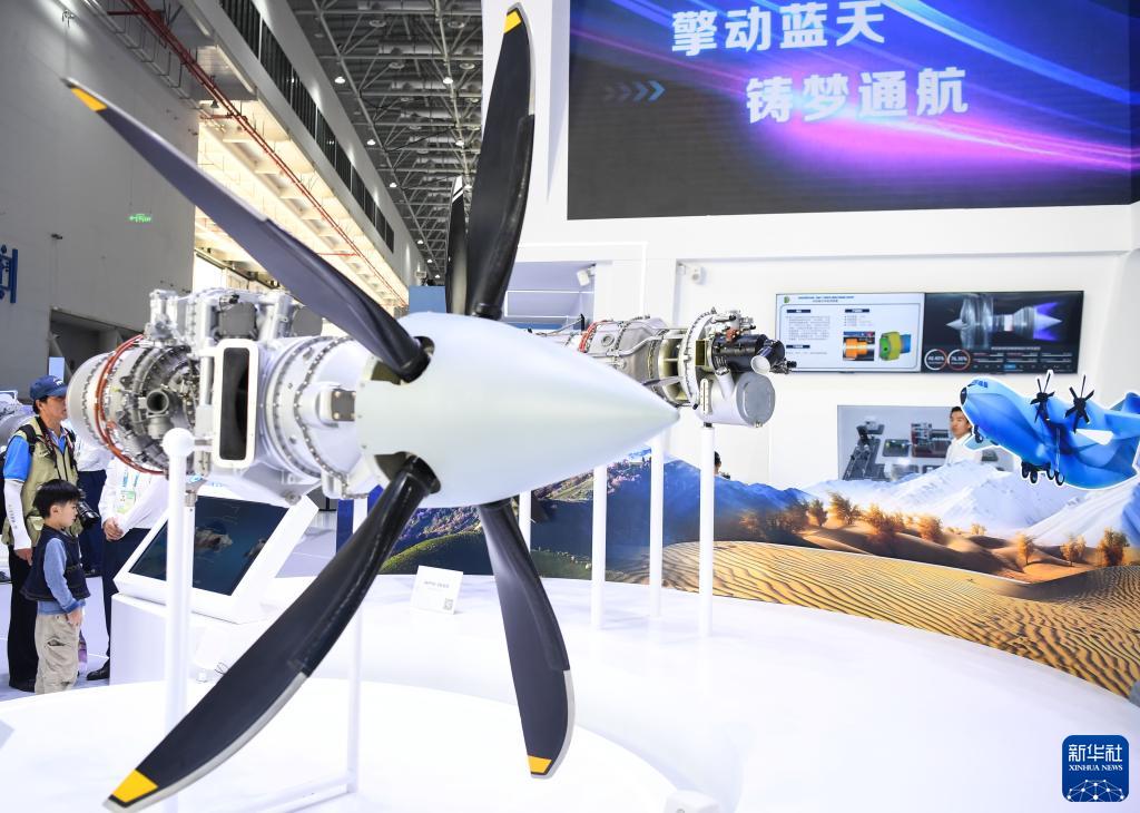 這是11月23日拍攝的中國航發(fā)展示的螺旋槳發(fā)動(dòng)機模型。
