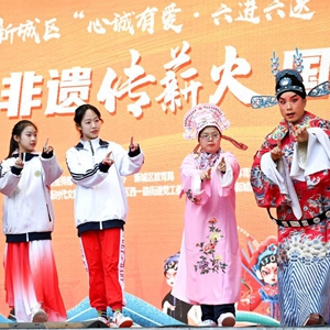 當日,西安市新城區“戲曲非遺傳薪火 國粹文化立自信”新時(shí)代文明實(shí)踐進(jìn)校園活動(dòng)在西安易俗社文化街區舉行。西安市新城區西一路小學(xué)的百余位師生聆聽(tīng)秦腔經(jīng)典曲目,感受傳統戲曲文化魅力。
