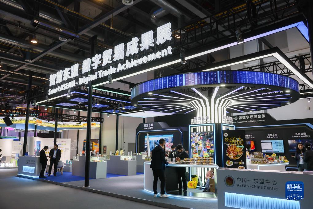 11月23日在第二屆全球數字貿易博覽會(huì )拍攝的智慧東盟數字貿易成果展。