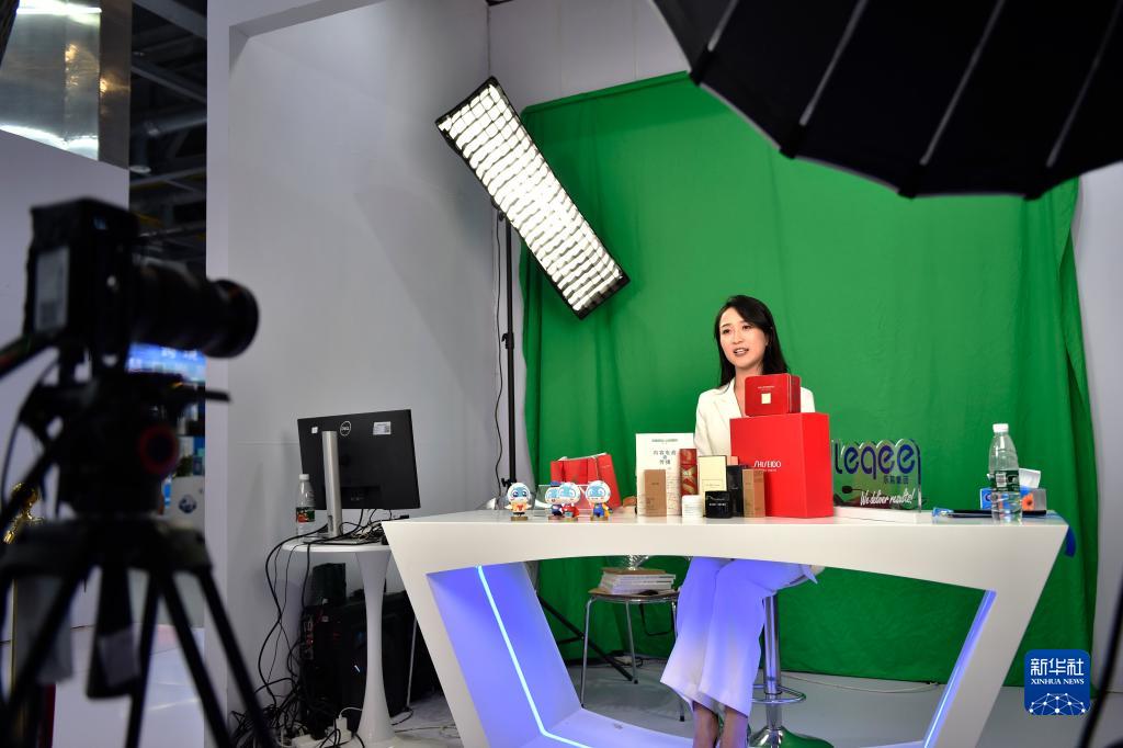 11月23日,在第二屆全球數字貿易博覽會(huì )絲路電商館,一名主播進(jìn)行電商直播。