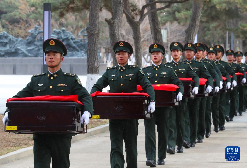 11月23日,志愿軍烈士遺骸抵達沈陽(yáng)抗美援朝烈士陵園。