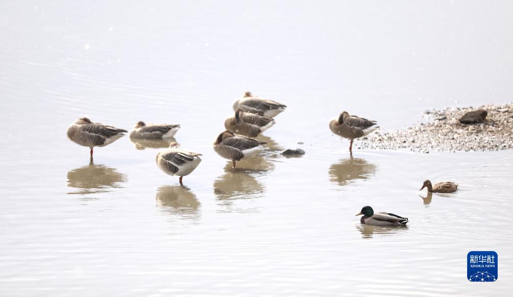 近日,在遼寧省沈陽(yáng)市渾河上,一群群鴻雁、赤麻鴨、鴛鴦等候鳥(niǎo)遷徙來(lái)此棲息。它們成群結隊在河面上覓食、休憩,成為冬日里一道美麗的風(fēng)景線(xiàn)。