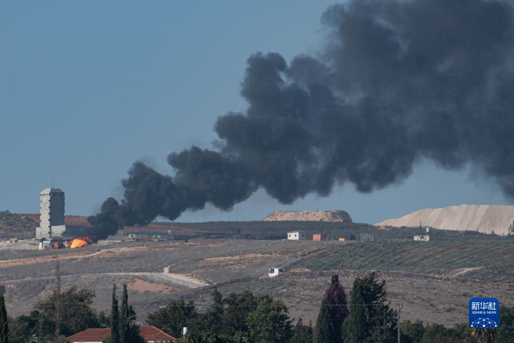 這張11月23日從黎以邊境以色列一側拍攝的照片顯示,黎巴嫩南部地區遭以軍襲擊后升起濃煙。