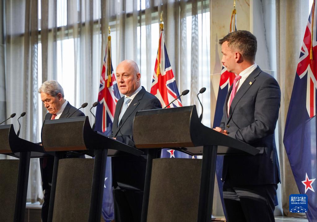 新西蘭候任總理、國家黨領(lǐng)導人克里斯托弗·拉克森24日與新西蘭行動(dòng)黨領(lǐng)導人戴維·西摩、優(yōu)先黨領(lǐng)導人溫斯頓·彼得斯在惠靈頓國會(huì )大廈簽署正式協(xié)議,宣布組建由國家黨領(lǐng)銜的新一屆政府。