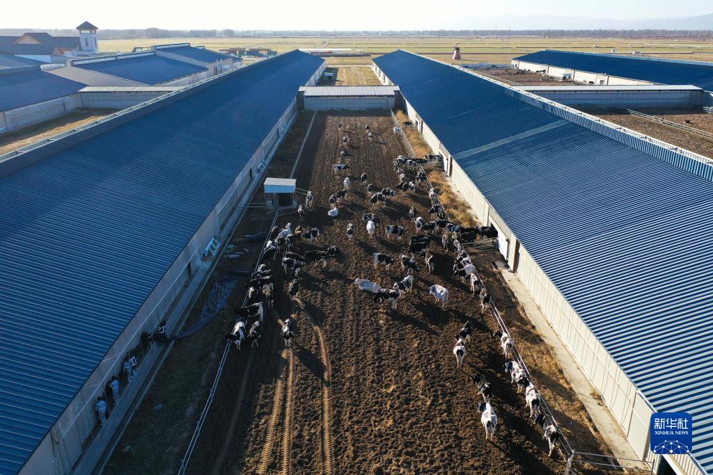 這是11月23日拍攝的呼和浩特市伊利敕勒川生態(tài)智慧牧場(chǎng)(無(wú)人機照片)。