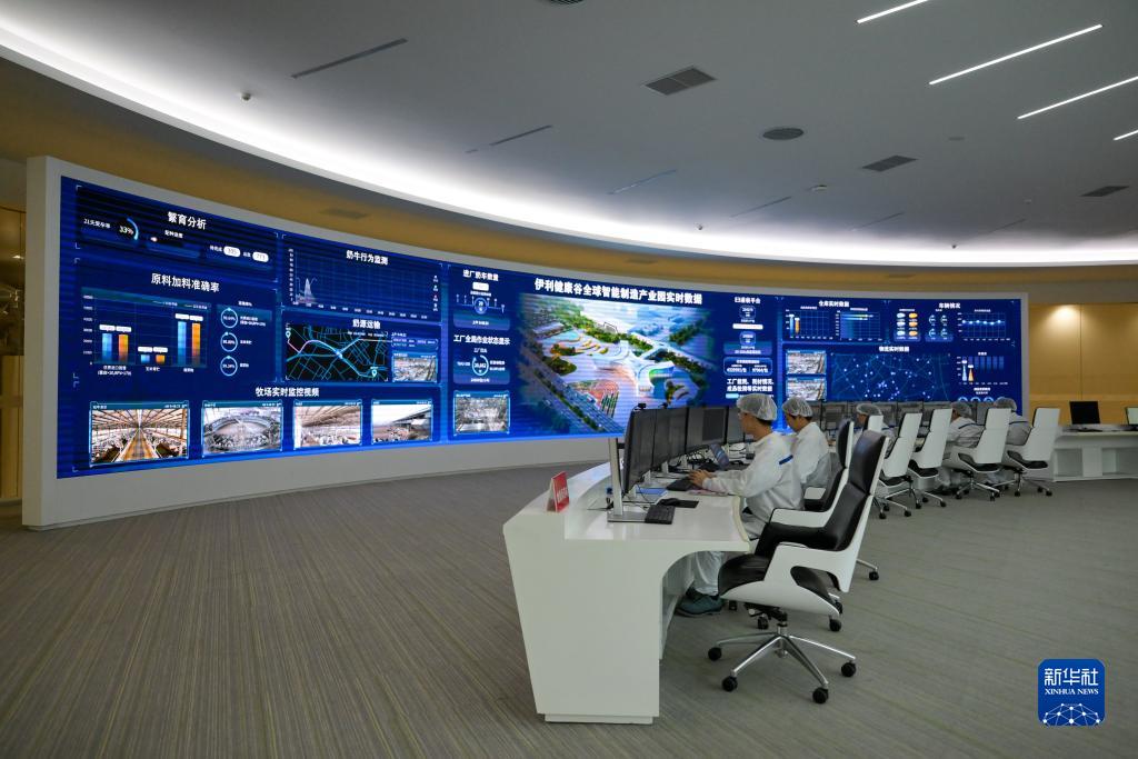 11月23日,在呼和浩特市伊利現代智慧健康谷液態(tài)奶全球智造標桿基地,工人在監測設備運行。