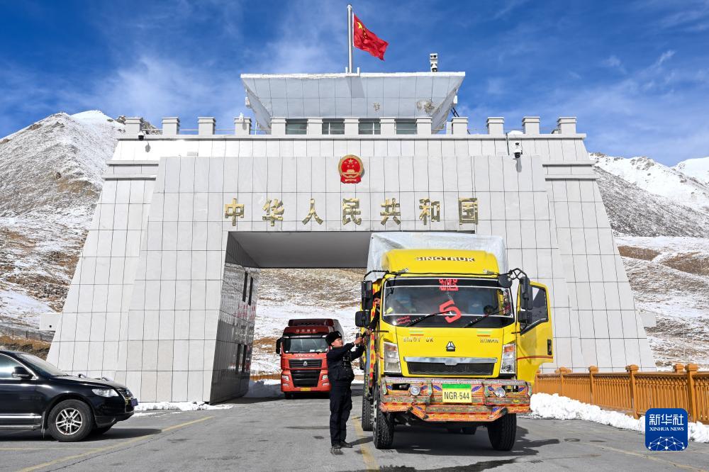 新疆出入境邊防檢查總站紅其拉甫邊檢站民警在國門(mén)對入境車(chē)輛進(jìn)行查驗 (11月6日攝)。位于新疆喀什地區塔什庫爾干塔吉克自治縣的紅其拉甫口岸,地處“中巴經(jīng)濟走廊”建設核心區,是“一帶一路”重要橋頭堡。